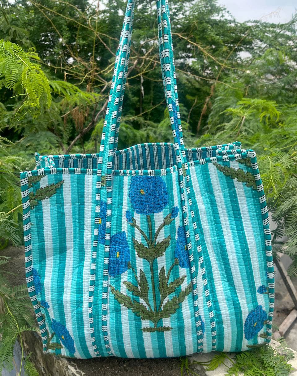 Bridal Shoulder Cotton Bags Floral Printed Quilted Shopping