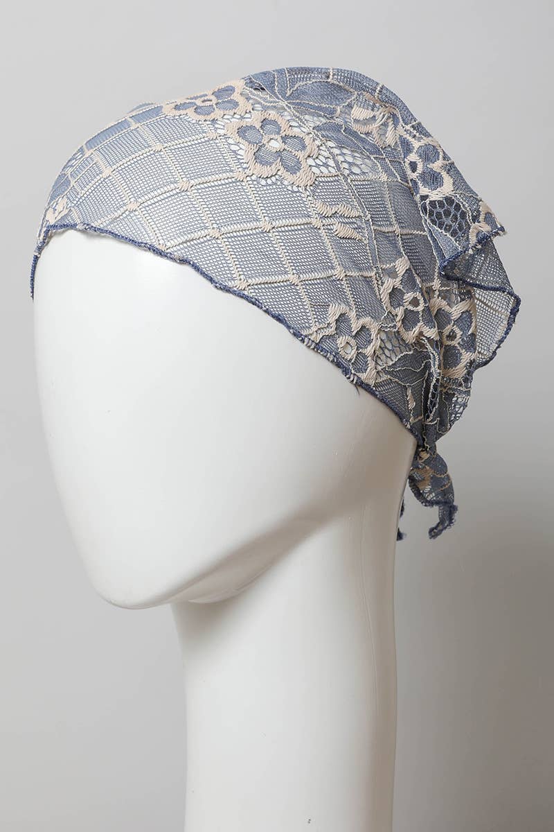 Chic Boho Lace Headscarf with Vintage Floral Patterns π: Blue